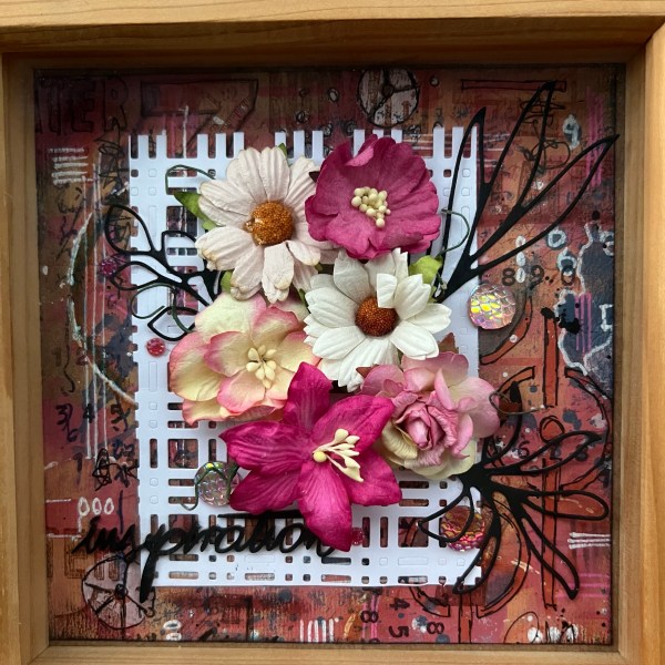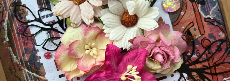 Having the elements already fussy cut out really helps me just go for it whereas if I was staring at a full piece of 12×12 I would never have made anything like this from the flowers on the paper.