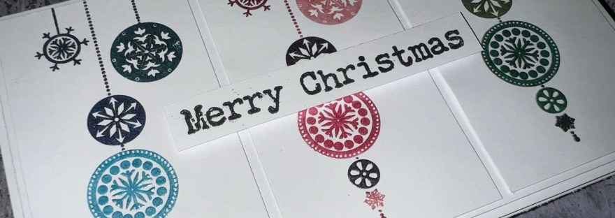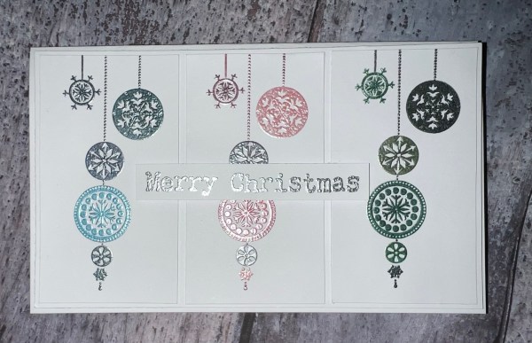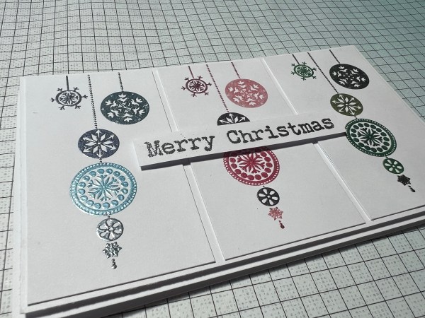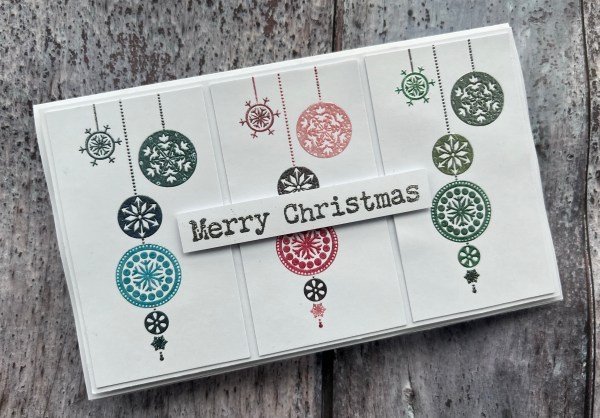 I will confess I made this back in February and videoed the whole process with a lot of fast forwarding as I did a lot of stamping of these baubles before I got to the final idea of making the three panels. But then I corrupted the video so that went in the bin!