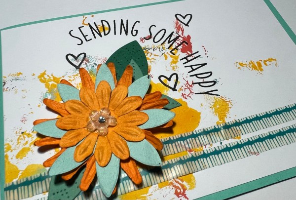 I adhered this panel to the base card, which is slightly larger with foam behind the middle section so it is slightly raised.