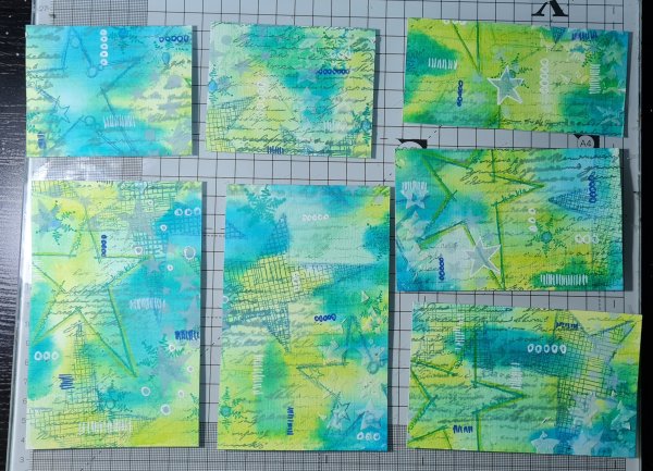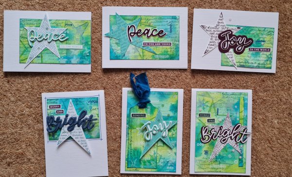 I cut it up into panels… although the one tip right got trimmed again to make the tag and the strip adding to the 2nd card as an extra element so didn’t let any of it go to waste and made these 6 cards.